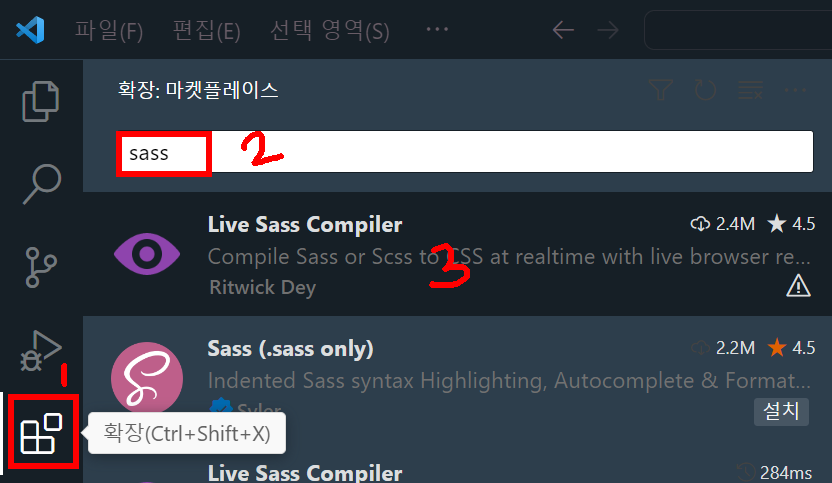 scss compiler -vscode 1. vscode 확장프로그램에서 sass 검색하여 complier 설치하기 2. 문서 작성 css 파일의 확장자는 .scss 연결은 css 3. 컴파일 시키는 방법 ctrl + shift + p CSS 2023.11.28