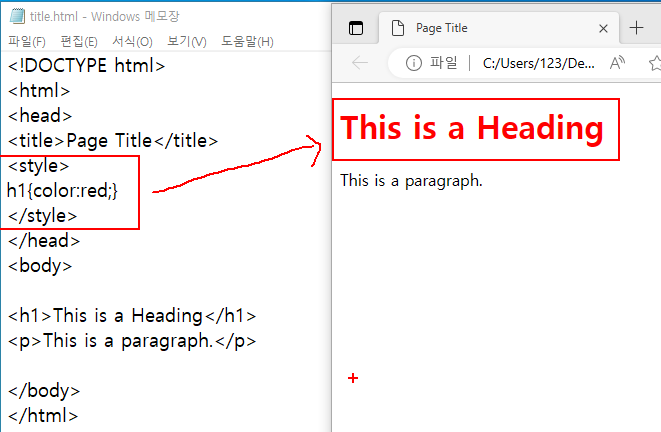 - style - 문서나 문서 일부에 대한 스타일 정보를 포함합니다. 일반적으로 스타일은 외부 스타일 시트에 작성하고 link 요소로 연결하는 편이 좋습니다.