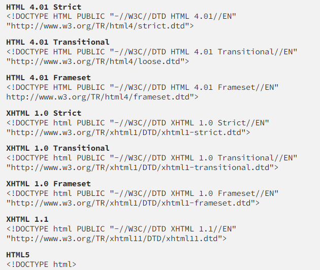DOCTYPE의 버전별 선언(HTML5, HTML4, XHTML)에 따라서 지원하는 태그가 조금씩 다르고,